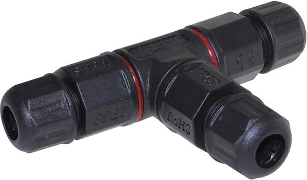 Boite de jonction 0,6/1kV, IP68, avec gel isolant et connecteurs. 3 pôles capacité 2,5-6,0mm². Conforme à EN50393, EN60695-2-11, CEI20-37/2-1/4, EN60529, RoHS-2, utilisation -20 +90°C
