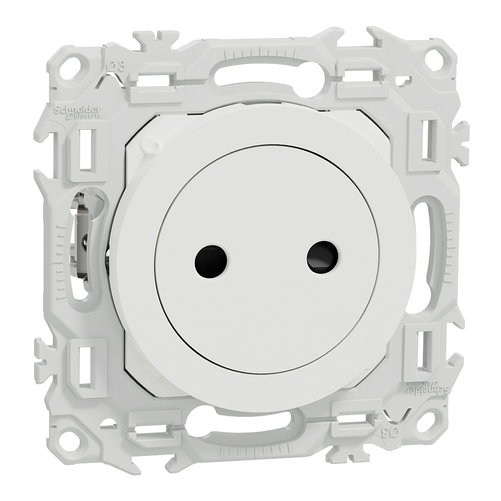 Odace - prise de courant 2P affleurante - griffes montées - 2x2 bornes auto - 1x1,5 à 2x2,5 mm² rigide ou souple - 16A 250VCA 50Hz - cache peinture - blanc RAL 9003 mat - IK04 IP21D - certifié NF