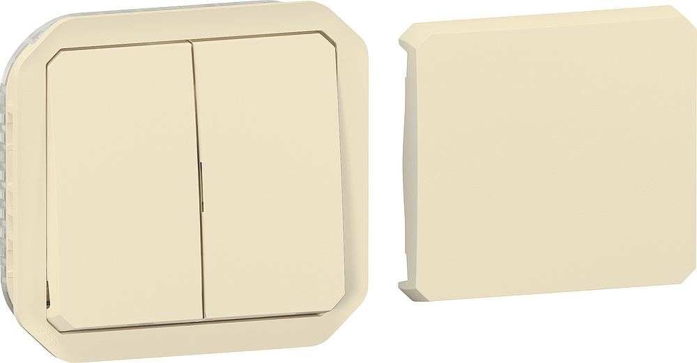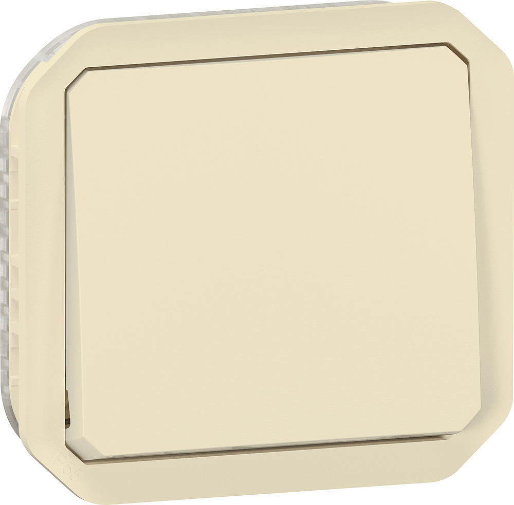 Interrupteur ou va-et-vient étanche Plexo 10AX 250V~ IP55 IK08 à équiper de support plaque ou boîtier saillie, livré avec enjoliveur finition sable