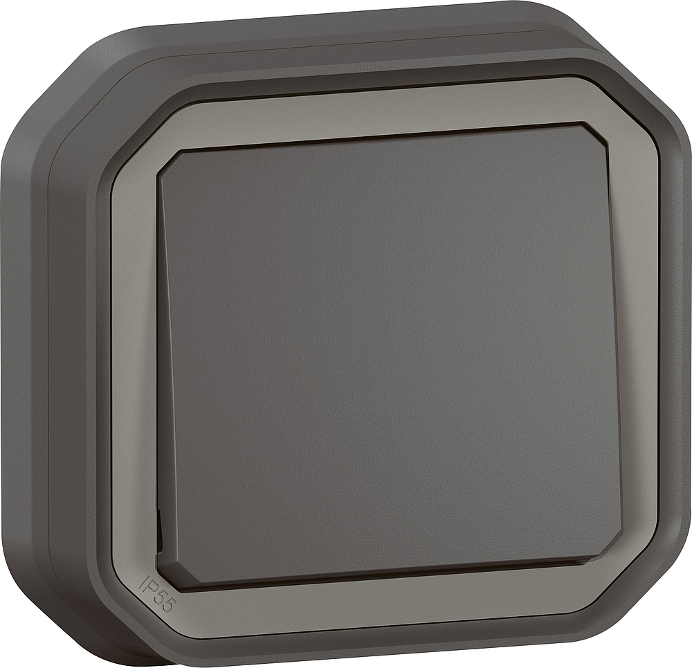 Interrupteur ou va-et-vient étanche Plexo 10AX 250V~ IP55 IK08 livré complet avec support plaque pour fixation en encastré - anthracite
