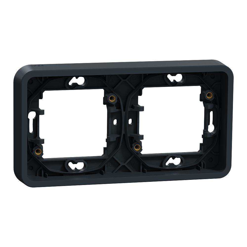 Mureva Styl - cadre pour montage encastré - 2 postes horizontal - entraxe 71 x gris RAL 7016 fixation par vis - auto-extinguible - Utilisation intérieur/extérieur - Dim. en saillie (mm) 84 x 155 x 19 - NF - IP55 - IK08 - Vente par 1