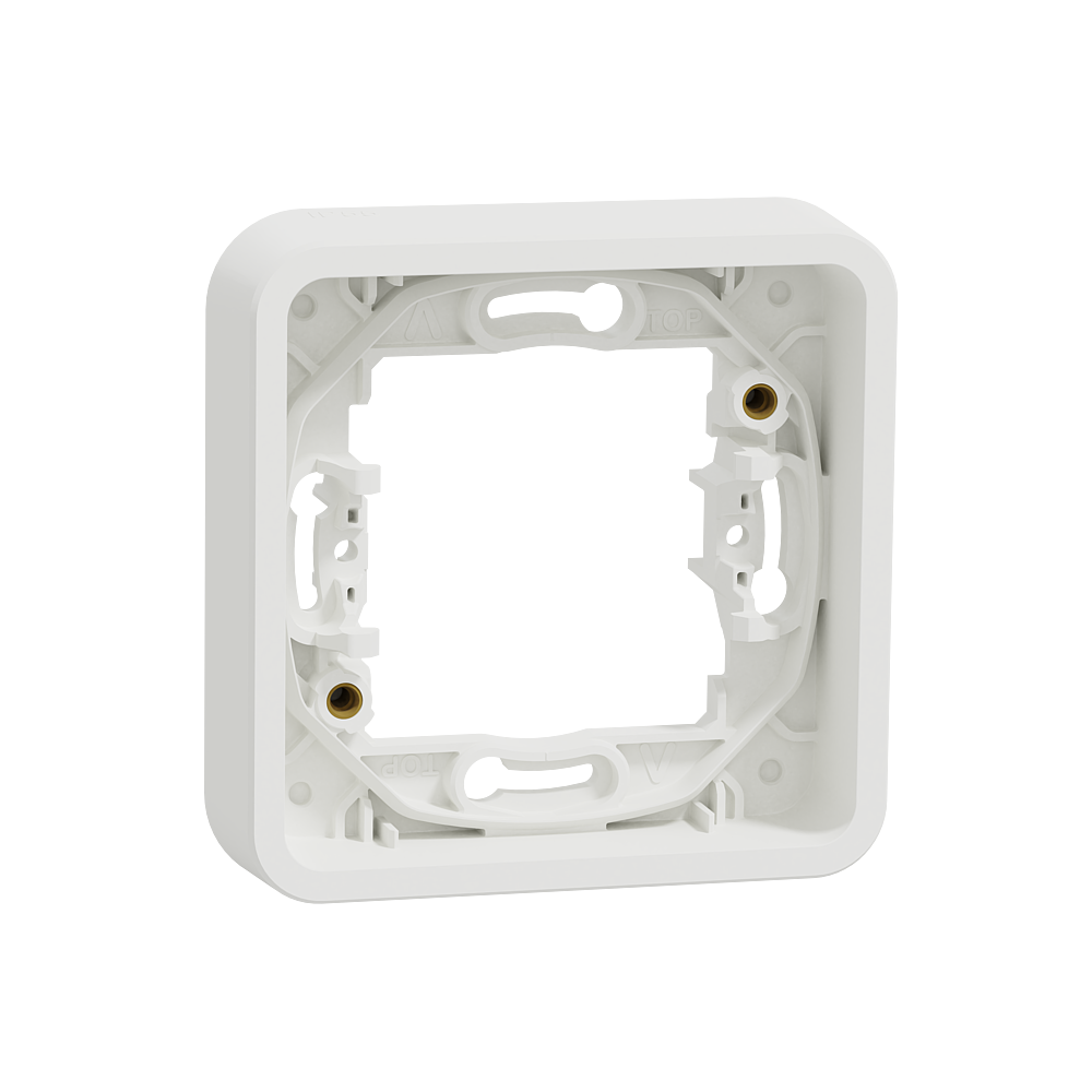 Mureva Styl - cadre pour montage encastré - 1 poste - blanc RAL 9003 fixation par vis - auto-extinguible - Utilisation intérieur/extérieur - Dim. en saillie (mm) 84 x 84 x 19 - NF - IP55 - IK08 - Vente par 1