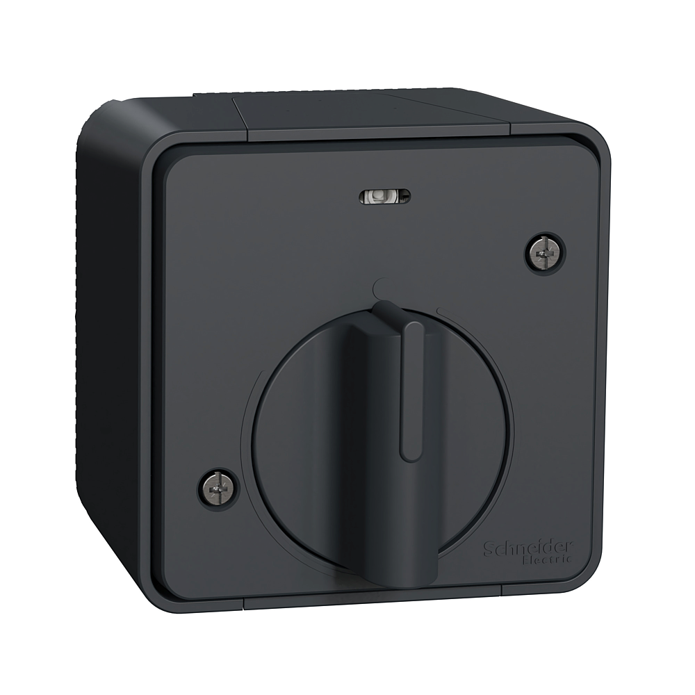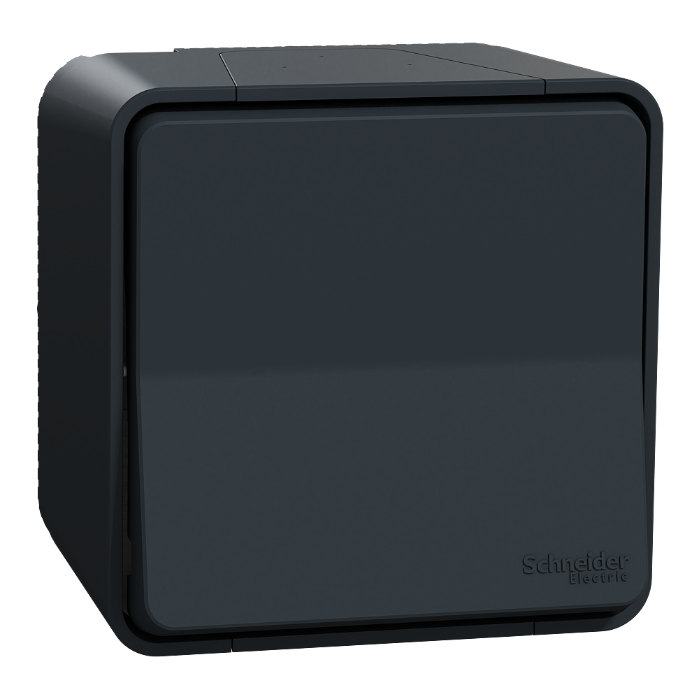 Mureva Styl - Prise de courant - Standard français - saillie - produit complet - 2P+T - 16A 250VCA - de 1 à 2,5 mm² - Entrées de câble Easy Valve Access Ø 6 à 12mm - gris RAL 7016 - NF - IP55 IK08 - auto-extinguible - 76x76x64 mm.