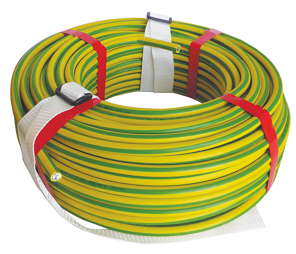 Conducteur en aluminium de section 50² gainé vert/jaune d'une longueur de 50m pour la colonne de terre