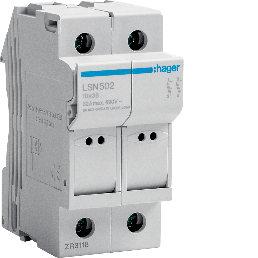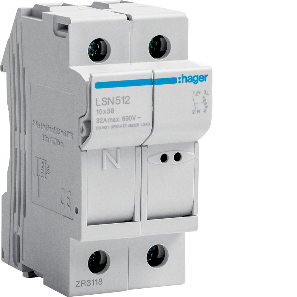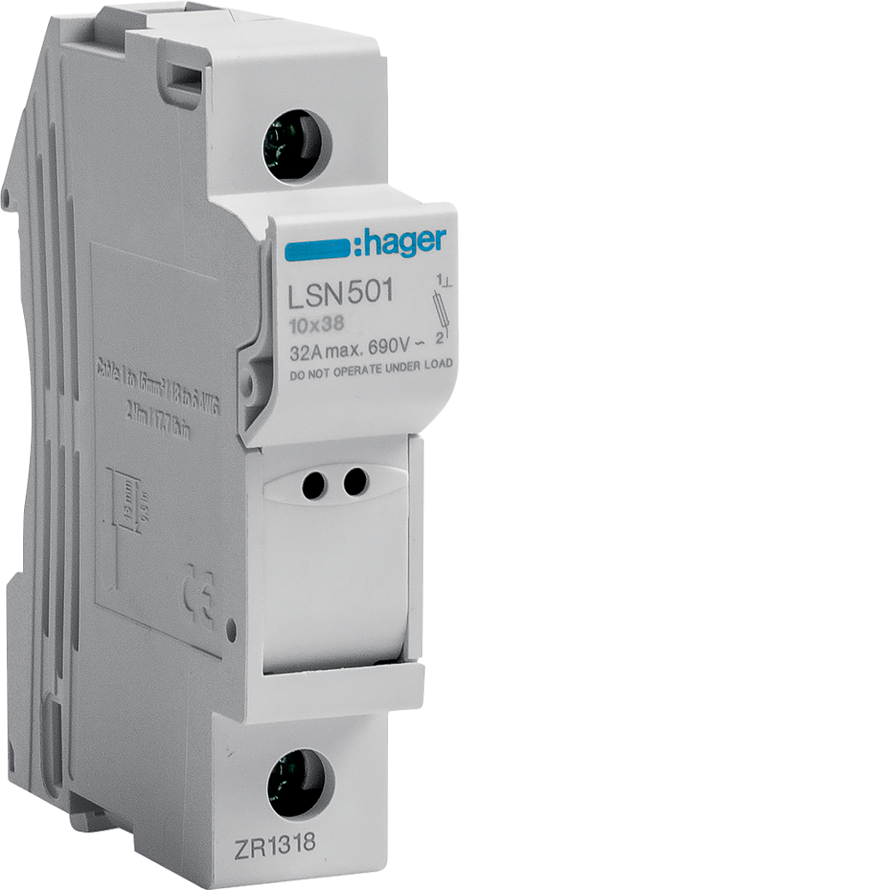 Coupe-circuit 1P+N 32A 690V L38 2 modules. Compatible avec les cartouches fusibles de taille 10*38mm.