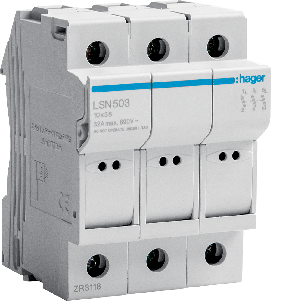 Coupe-circuit 3P 32A 690V L38 3 modules. Compatible avec les cartouches fusibles de taille 10*38mm.