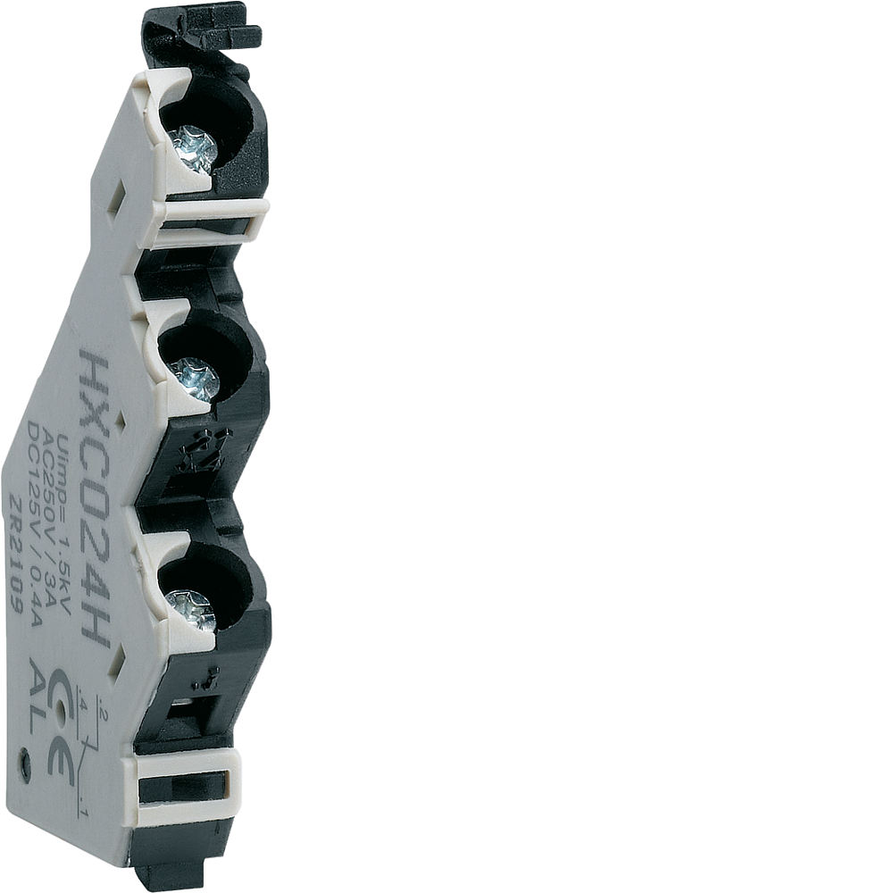 Le HXC025H est un contact auxiliaire bas niveau pour disjoncteur boitier moulé h3 h400 h630 h800 h1000 h1600 de Hager. Contact type 1O+1F supportant une tension de 125 - 125VAC ou 30 - 30VDC.