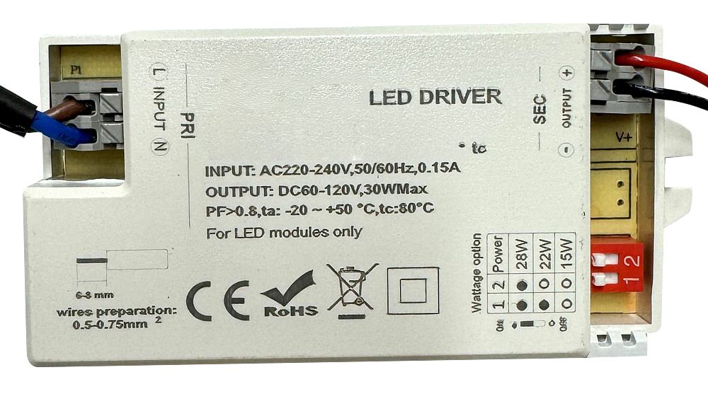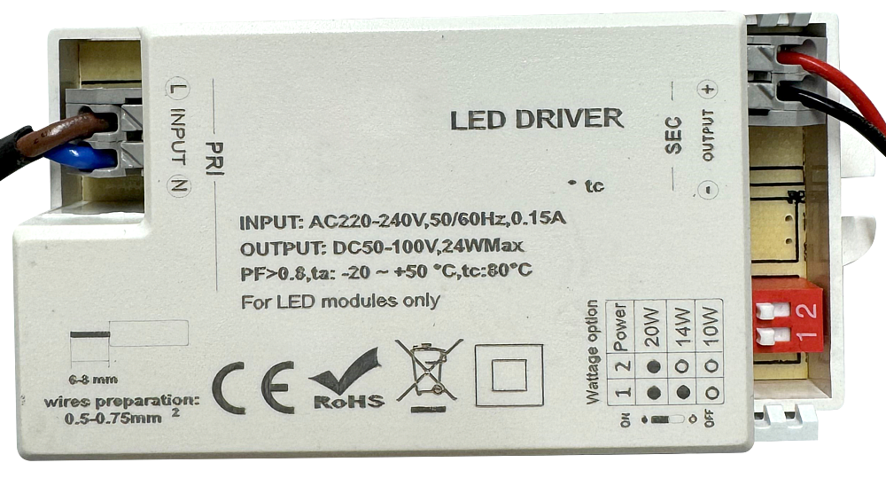 Driver LED à tension constante 0-30W 220-240 VAC /24VDC Gradable