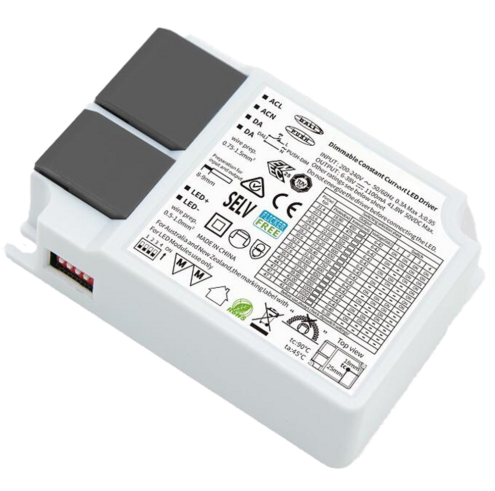 Driver DALI/Push Dim à courant continu ajustable 42W maximum avec connecteur male DC5521