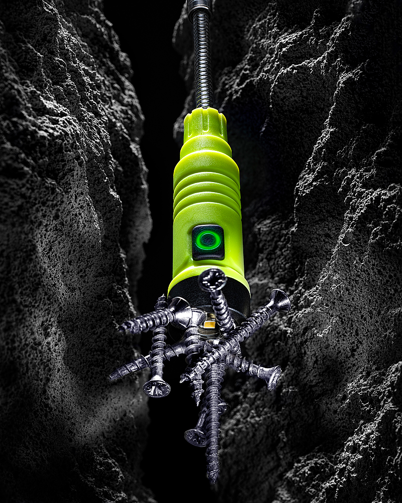 Lampe LED 125 lm, télescopique (177–505 mm) avec col de cygne flexible, aimant puissant, base magnétique, IP65/IK09, batterie Li-ion 180 mAh, charge USB-C rapide, format de poche robuste et léger, mémoire intelligente