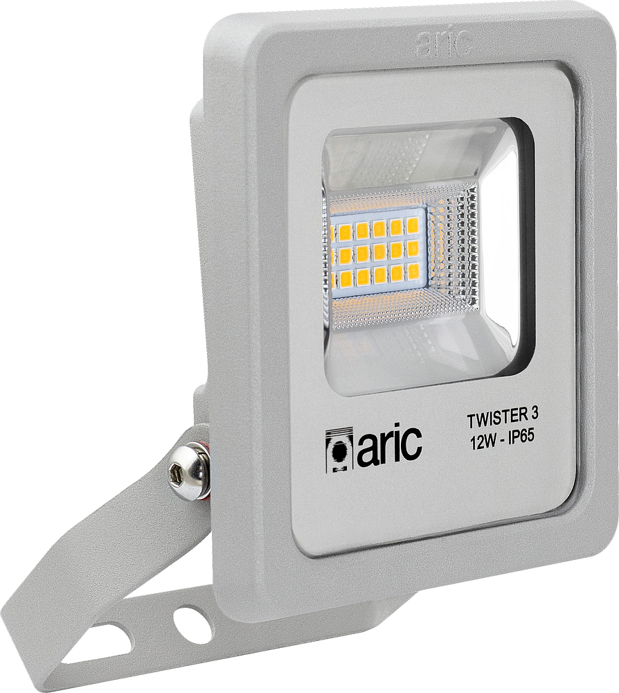 Projecteur extérieur TWISTER 3 LED IP65 IK08, gris (RAL 9006), faisceau symétrique 90° LED intégré 12W 3000K 1450lm IRC80, intérieur/extérieur, Cl.Energ ErP2021 = E, durée de vie 50000h, test BS 480h