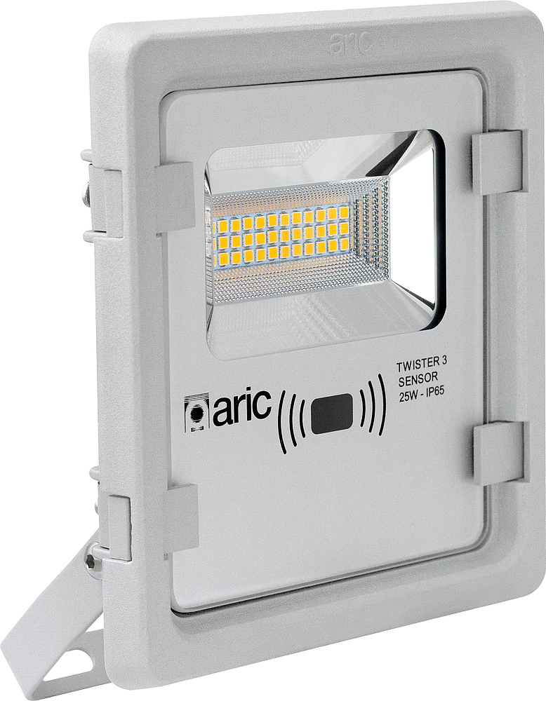 Projecteur extérieur TWISTER 3 LED IP65 IK08, gris (RAL 9006), faisceau symétrique 90° LED intégré 25W 3000K 2500lm IRC80, intérieur/extérieur, détecteur de mouvement Microwave réglable intégré, télécommande fournie