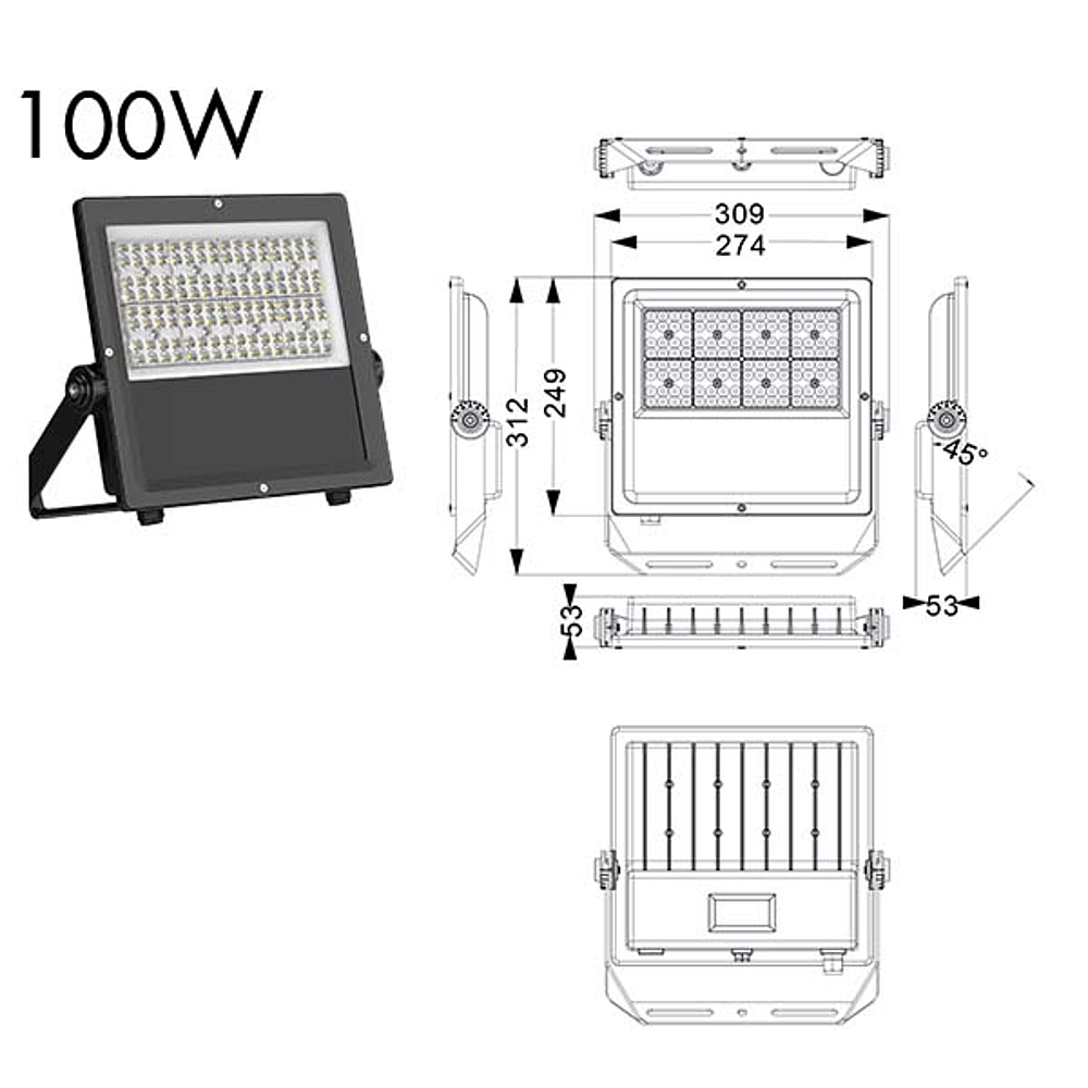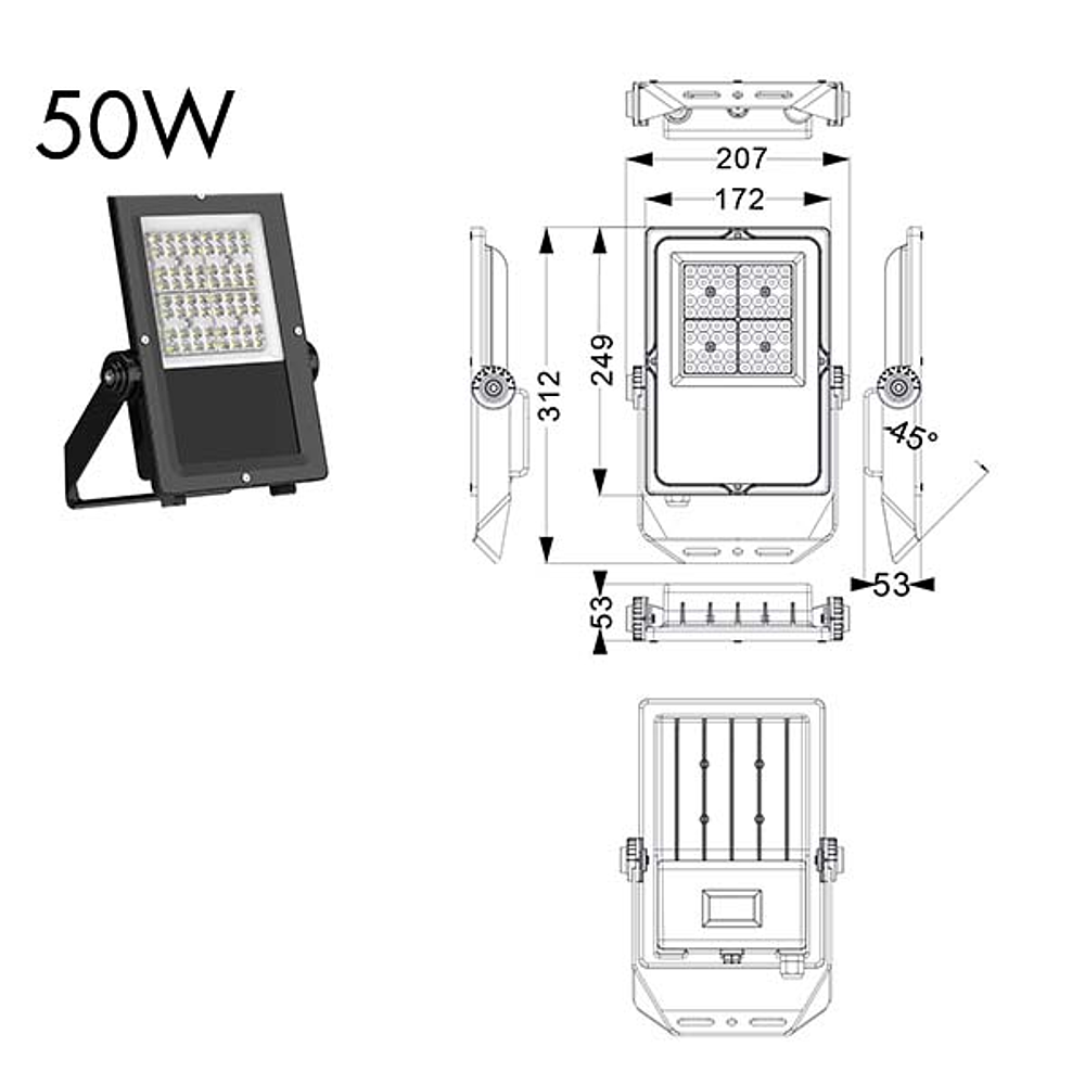 Le ROCKA50 est un projecteur asymétrique doté d’un rendement élevé de 160 à 180lm/W selon l’optique. Avec ses 5 angles de diffusion de 15° à 120°, ce projecteur LED répond à tous les besoins.