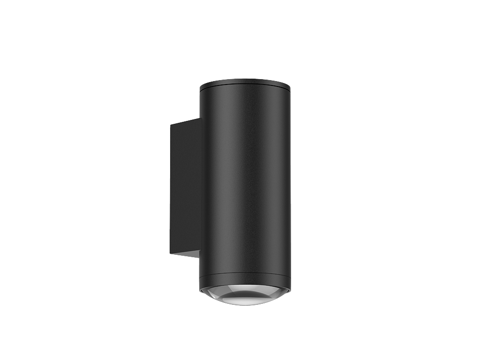 MiraCS™ - Applique murale COB modulaire noire IP65, fonte d'aluminium, commutable en couleur 3000/4000/500K et traité brouillard salin. Optiques équipées de lentilles convexes et symétriques. Livré avec un driver dimmable.