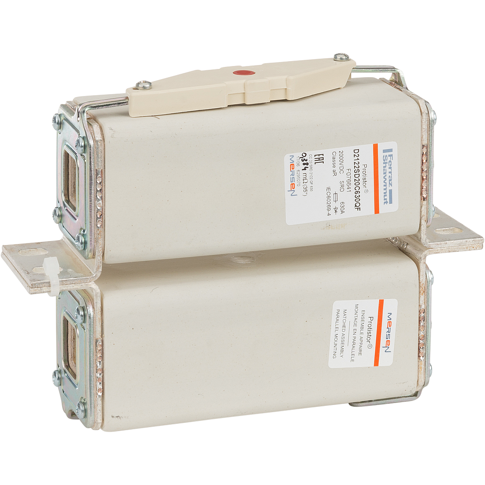 Fusible ultra rapide à corps carré Protistor® Taille 2x122 aR 2000VDC CEI 630A Avec Percuteur Équerres