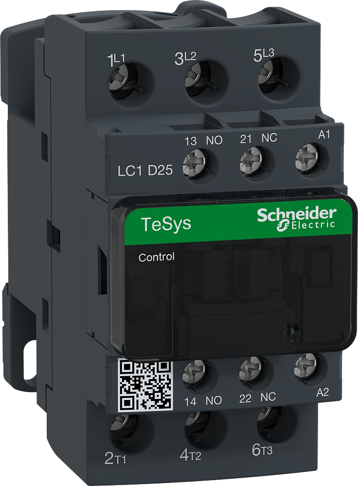 TeSys - contacteur D - 3P - 3F - contacts auxiliaires 1F+1O - bobine 48VCA 50/60 Hz - sans antiparasite - AC-1 | AC-3 | AC-4 - 25A (<= 60°C) à <= 440VCA AC-3 | 40A (<= 60°C) à <= 440VCA AC-1 - bornes vis-étrier