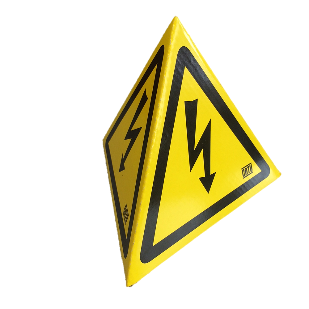 Triangle de signalisation DANGER ELECTRIQUE pr véhicule électrique hybride - à placer sur le toit. En plastique résistant, base magnétique. Livré à plat