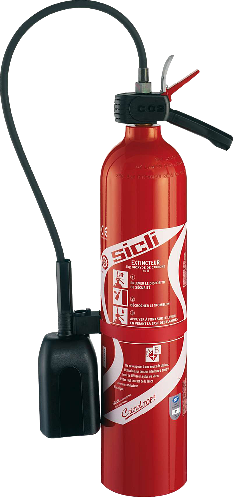 A dioxyde de carbone CO2 pr feux d’origine électrique et de liquides inflammables (type B). A utiliser jusqu’à 20 kV avec diffuseur à plus d'1 m et de 20 kV à 35 kV à plus de 2m. Homologation 70B, Certification NF/EN3 N°EC5 595 109.