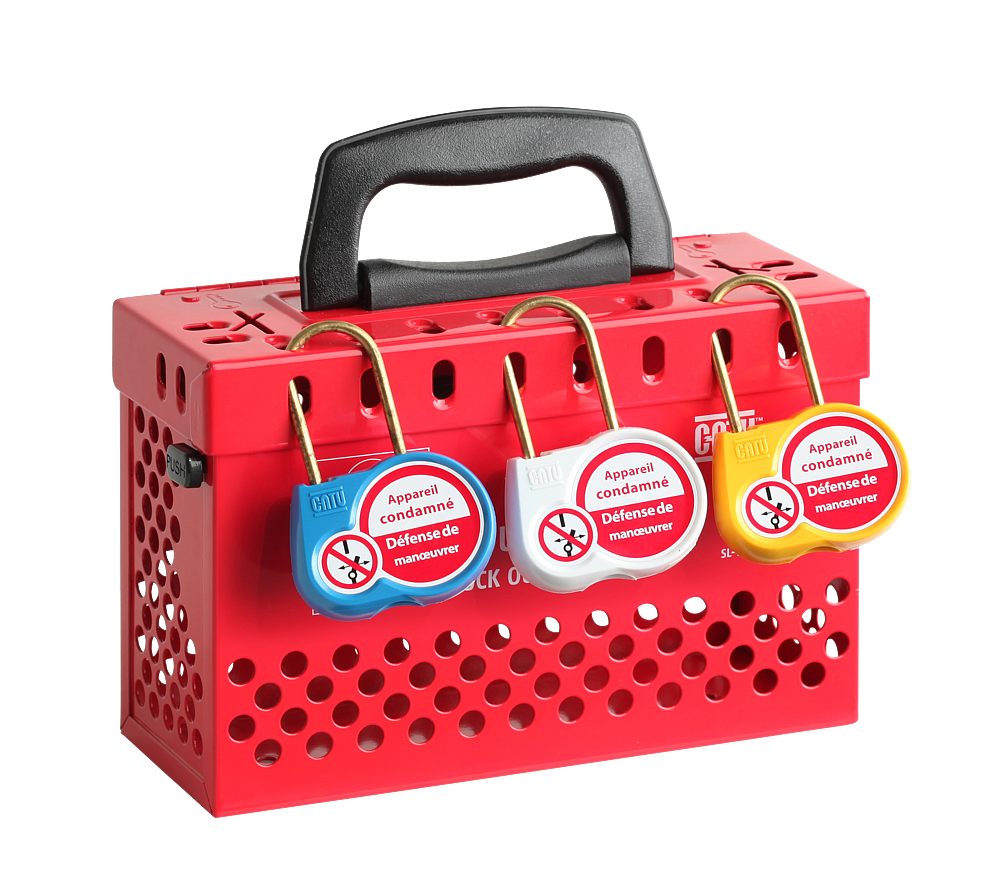 Boite de consignation de groupe. Empêche une décondamnation intempestive alors que les opérateurs sont en intervention