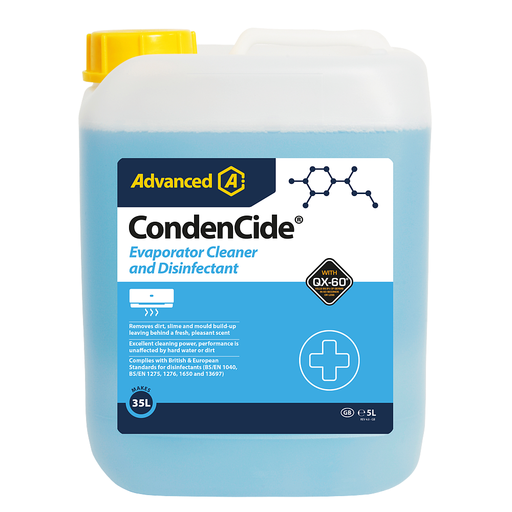 CondenCide est un nettoyant désinfectant concentré pour évaporateurs, serpentins et bacs à condensats. Élimine bactéries, moisissures et odeurs. Utilisable avec pompe. Idéal pour l’entretien CVC et la désinfection professionnelle.