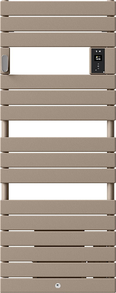 Le Radiateur sèche-serviettes Riviera 2 brun sable 2000W chauffe rapidement grâce à sa soufflerie. Design soigné, couleur douce, patère intégrée pour suspendre facilement. Puissant, pratique et adapté à toutes les salles de bain.