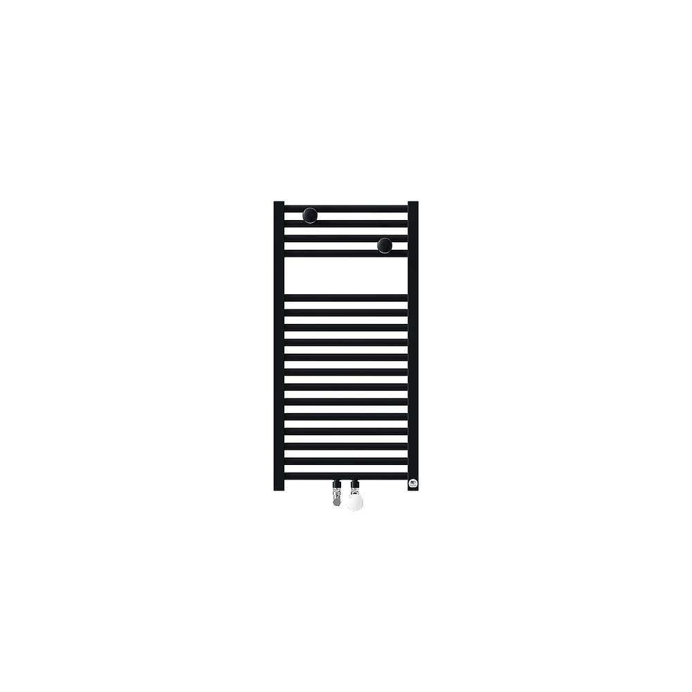 Radiateur sèche-serviettes Riva 4 Eau Chaude 717W noir raccordement sur les collecteurs - Livré avec 2 patères repositionnables