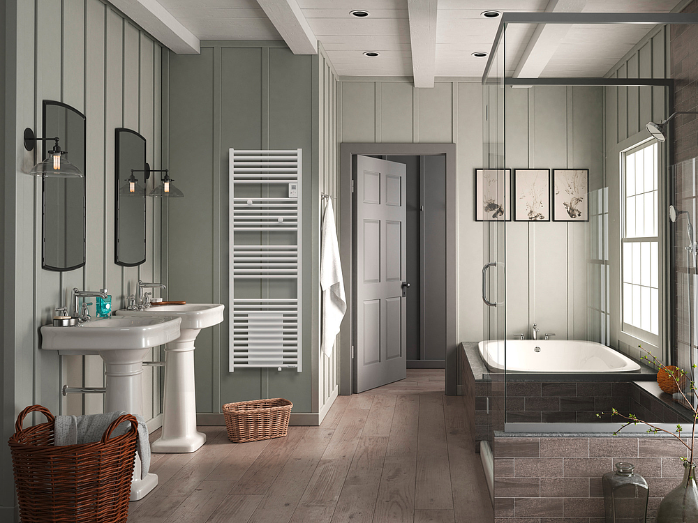Profitez d'un sèche-serviettes qui chauffe votre salle de bains et capable de chauffer et sécher aussi vos serviettes.