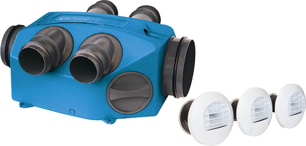 Kit autocosy - vmc autoreglable - jusqu’à 4 sanitaires - raccord élec. rapide, fixation conduits twist&go - 3 bouches universelles lines (2 sanitaires + 1 cuisine) %VERSION% KIT AUTOCOSY - VMC AUTOREGLABLE - Jusqu’à 4 sanitaires - Raccord élec.