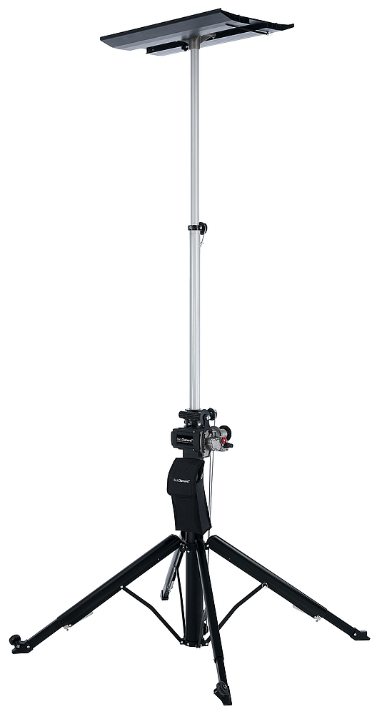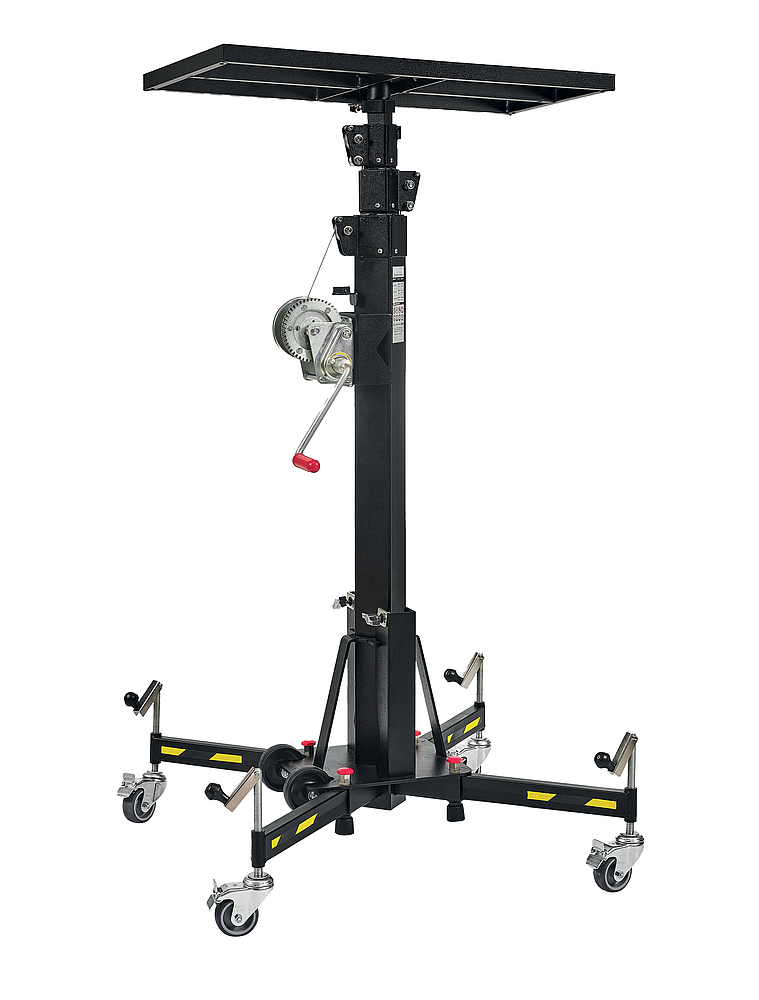 AIRLIFT SYSTEMS – Lève-charge électrique H. max 4,9 m, treuil 230 V avec variateur. Poids total 33,1 kg (lève-charge 28,5 kg + plateau 4,6 kg). Charges