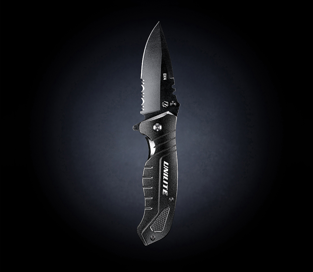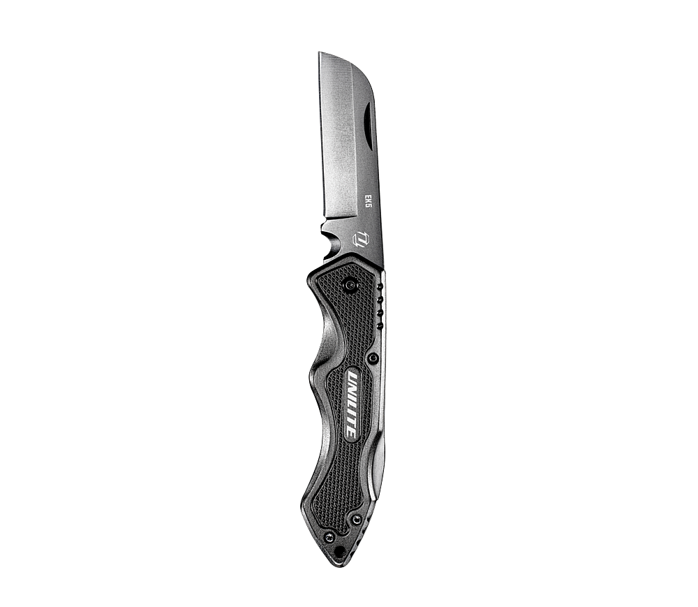 Lame pied de mouton en acier inoxydable en carbone. Dureté de la lame 56-58 HCR. Encoche intégrée pour dénuder les câbles. Poignée ergonomique en aluminium ultra résistante. Sytème de verrouillage à pompe arrière back-lock.
