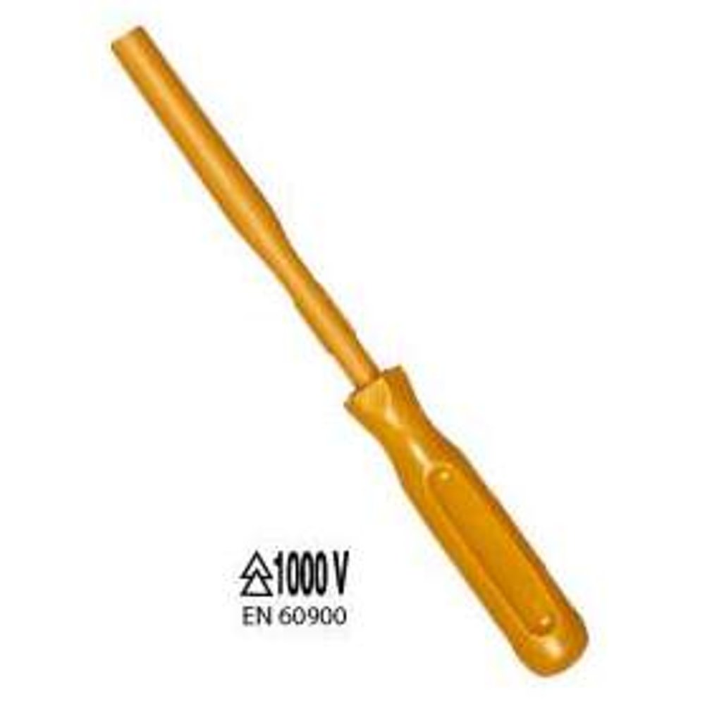Clé 6 pans femelle emmanchée 7 mm, isolée 1000V, isolation trempée orange.
