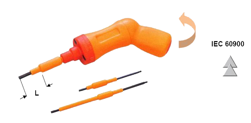 Tournevis dynamométrique isolée 1 000 V AC. Conforme IEC 60900. Gamme de serrage