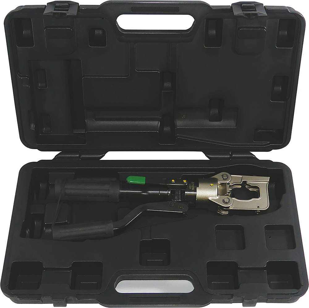 Valise pour presse hydraulique HD030 livrée vide avec emplacements pour 12 jeux de matrices.
