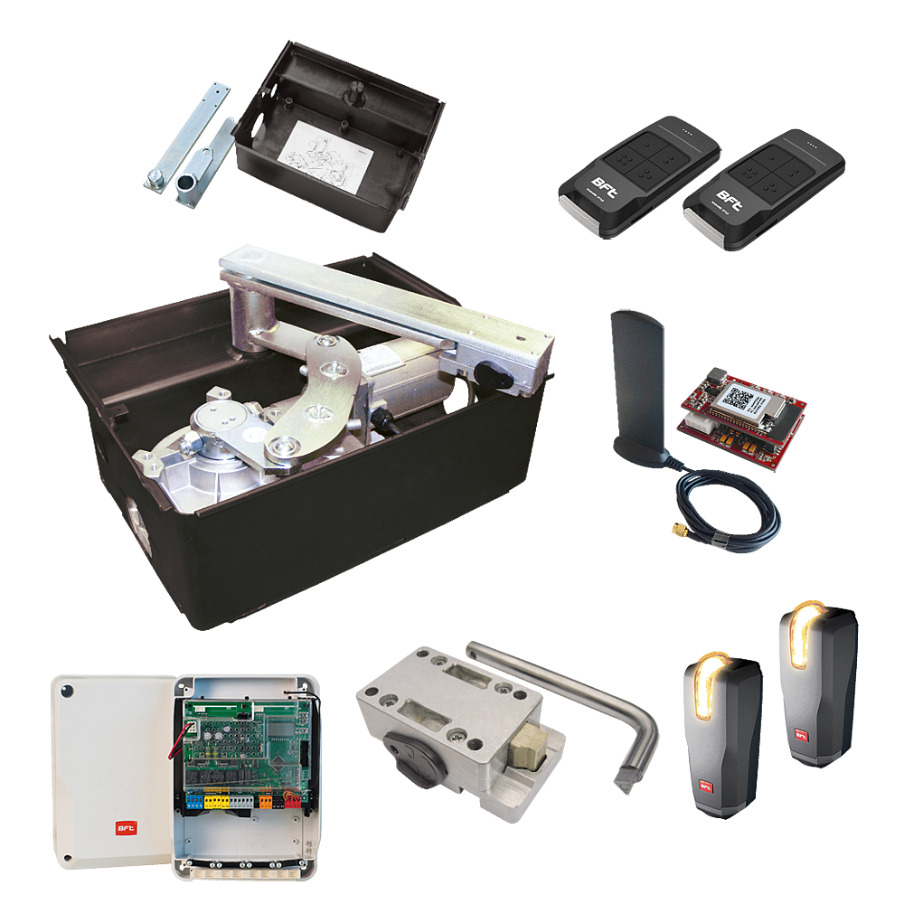 Kit pro Fra. 230 V pour portail battant jusqu'à 500 kg et 5 m de longueur. Composé de