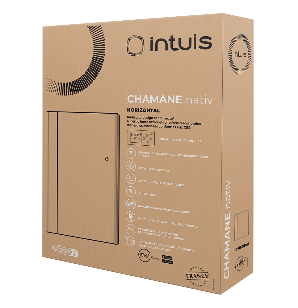 Chamane radiateur horizontal - 1500 watts - blanc satiné - Inertie fonte active - Détection d'ouverture de fenêtre - Programmable - Connectable avec INTUIS CONNECT with Netatmo - Origine France Garantie. - Origine France Garantie.