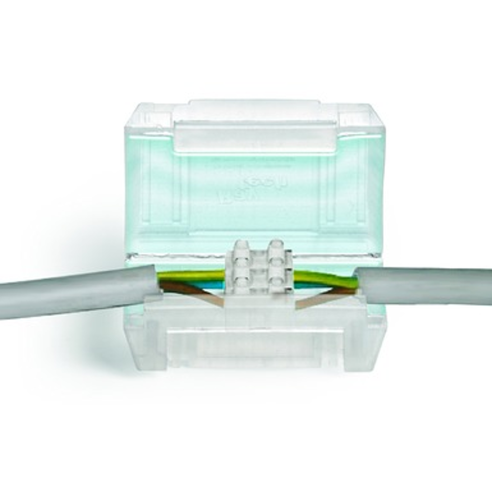 Boitier pré-remplis de gel avec entrées tri-directionnel + 3 bornes 2 pôles de 4mm² inclus, livré en blister. Dimensions