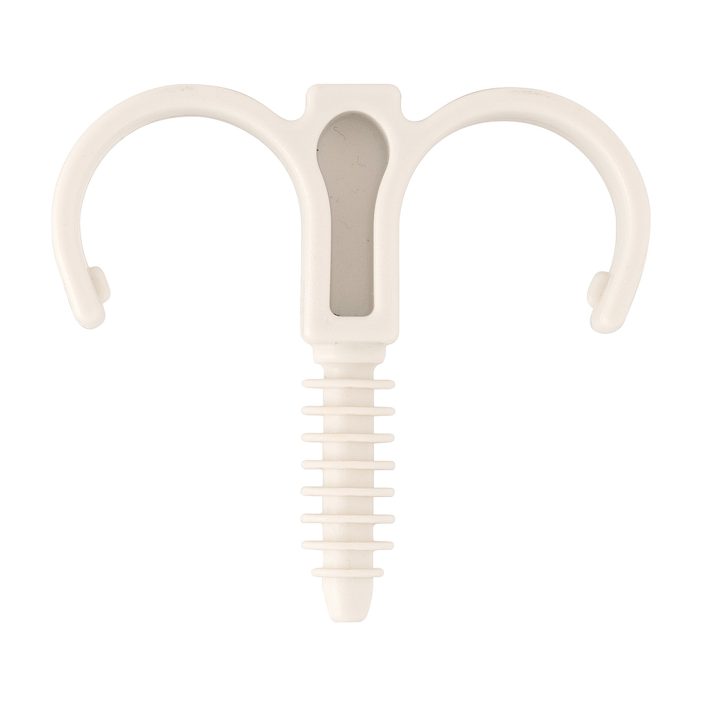 Attache de dalle double multidiamètre, pour le maintien au sol de tubes et gaines ø16 à ø28. Se pose par simple frappe. Sa pointe conique facilite l'insertion et le centrage. Chaque dimension couvre 2 diamètres.