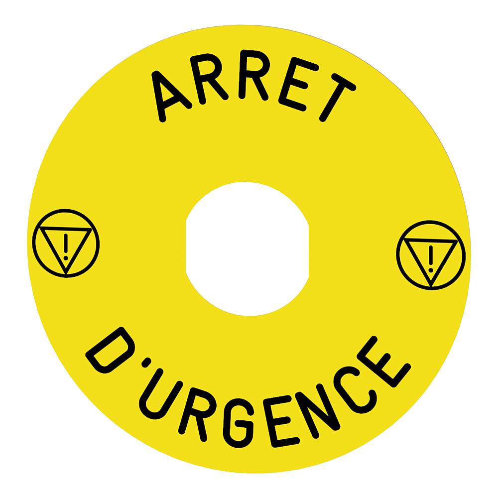 Harmony étiquette circulaire Ø90mm jaune - logo EN13850 - arrêt d'urgence - taille de l'étiquette
