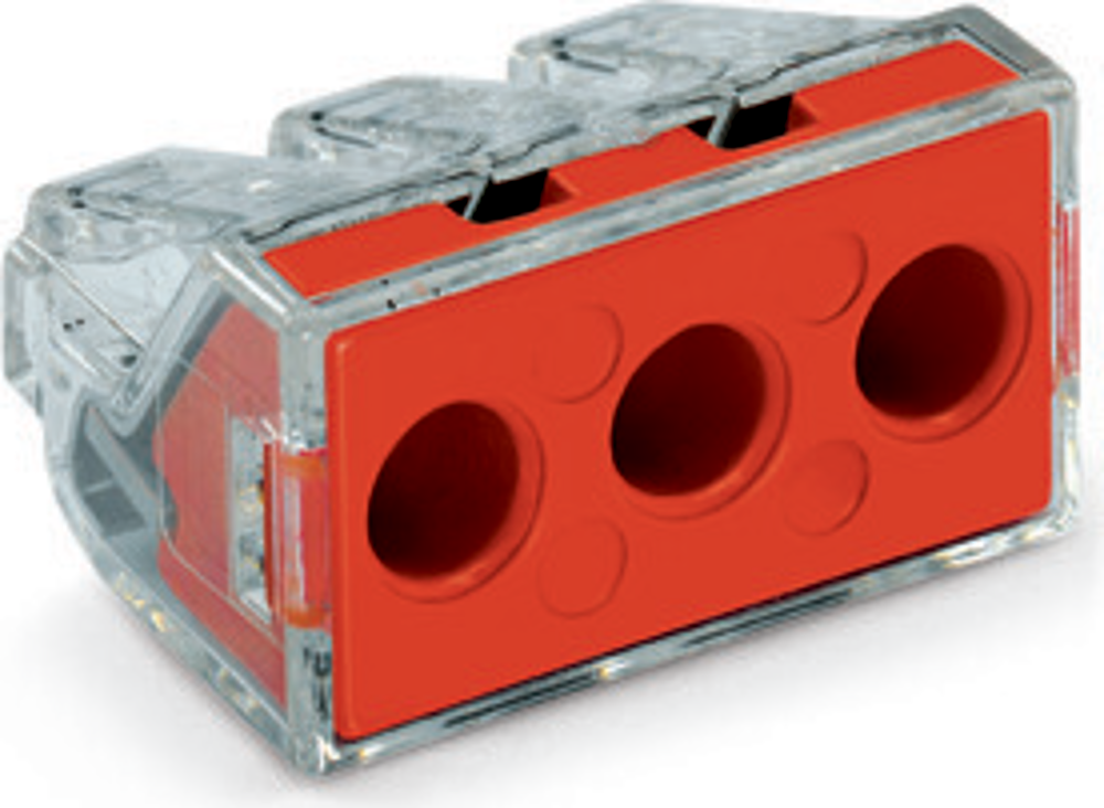 Borne ind. isolée 3 x 2,5 -6,0 mm² - 41 A - 400 V - rigide ou semi-rigide. Conforme à la C15-100, résistant au test au fil incandescent 960°C. %VERSION% Gain de temps et réduction des coûts grâce à un câblage jusqu'à 6 mm² dans les boîtes d
